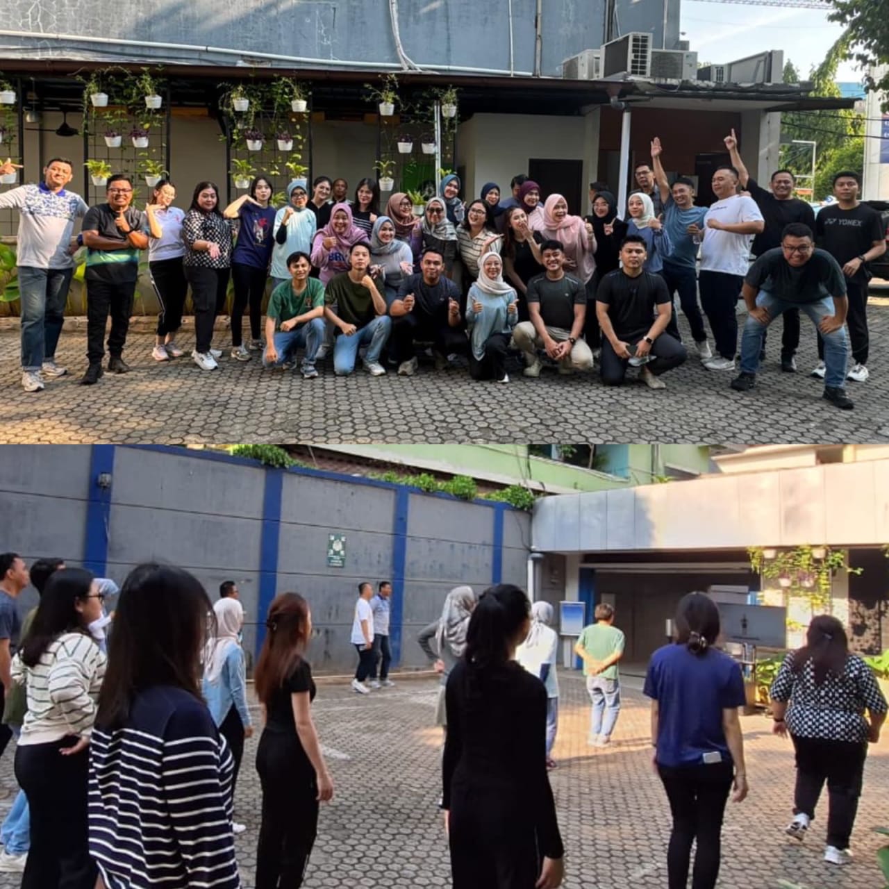 Jumat – Seluruh pegawai BO Kebon Jeruk dari berbagai unit kerja berkumpul di area parkir belakang kantor untuk mengikuti kegiatan Senam Pagi Bersama.