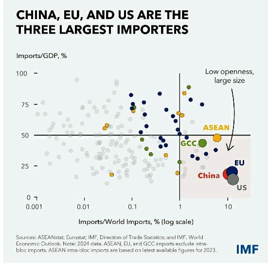 Menurut data IMF, Tarif impor AS telah melonjak ke level tertinggi dalam 50 tahun, Jumlah hambatan non-tarif global meningkat 35% sejak 2020, Investasi manufaktur global terhambat akibat ketidakpastian kebijakan.