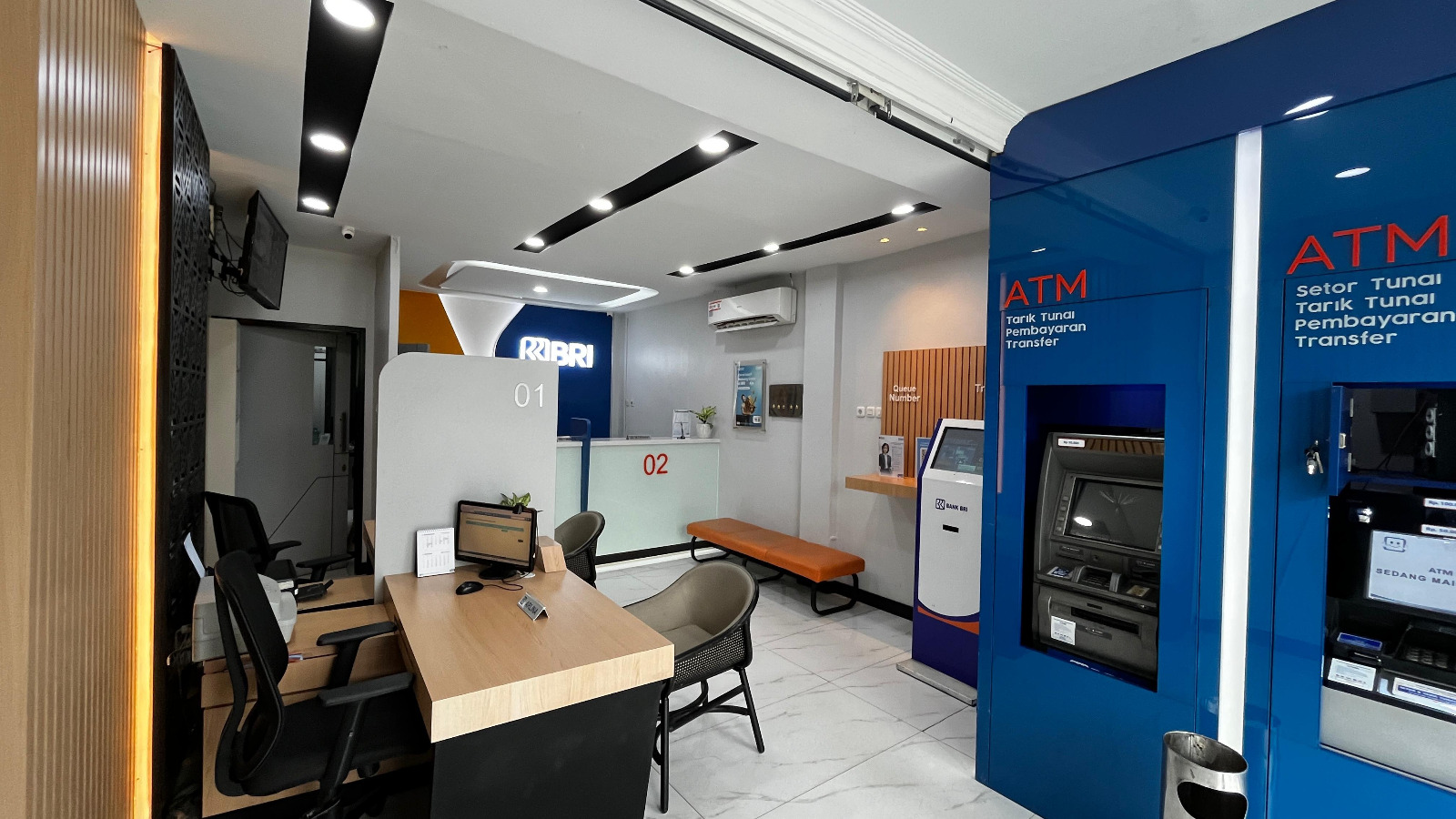 Nikmati pengalaman perbankan yang lebih menyenangkan dengan desain interior yang hangat, fungsional, dan estetis. Material berkualitas, pencahayaan yang optimal, serta tata ruang yang interaktif akan membuat setiap kunjungan Anda semakin berkesan.