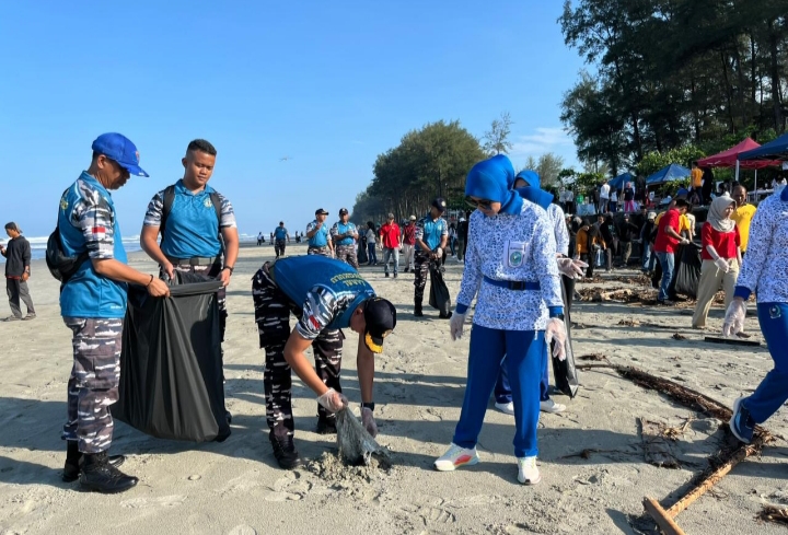 Dalam pelaksanaannya, Personel Lanal Bengkulu bersinergi dengan pihak Bencoolen Mall dan unsur terkait Bersama-sama melakukan aksi bersih pantai dengan mengumpulkan sampah plastik dan limbah lainnya yang berpotensi merusak ekosistem laut, Sabtu (25/04/2026).