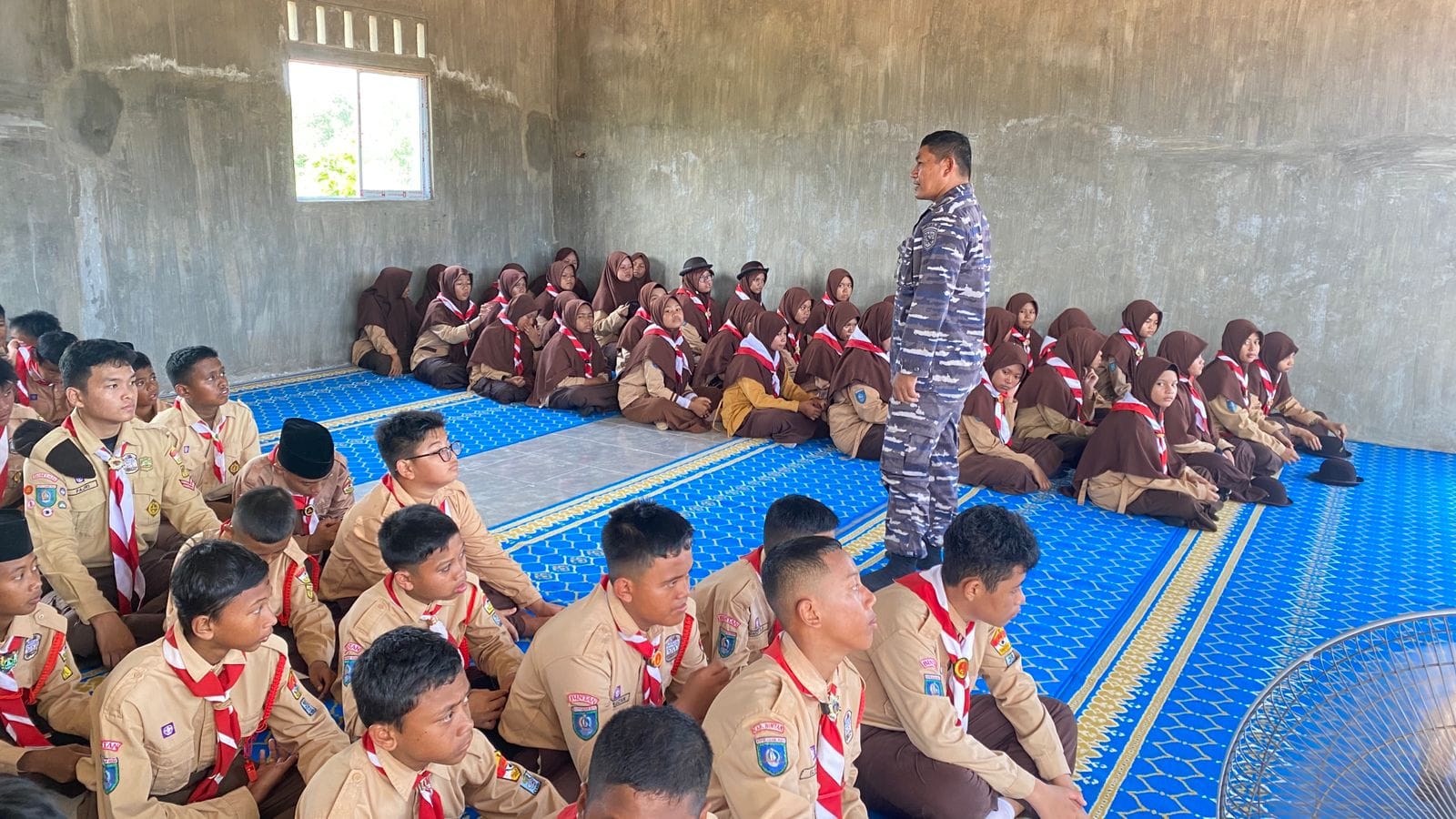 Bintan,- Dalam rangka mendukung pelaksanaan Masa Pengenalan Lingkungan Sekolah (MPLS) Tahun Ajaran Baru 2025/2026, Lanal Bintan melalui Staf Potensi Maritim memberikan Wawasan Kebangsaan, Karakter dan Pelatihan Kedisiplinan kepada Siswa Baru SMPIT An-Nahl, bertempat di SMPIT 5 Seri Kuala Lobam, Bintan, Selasa (15/7/2025).