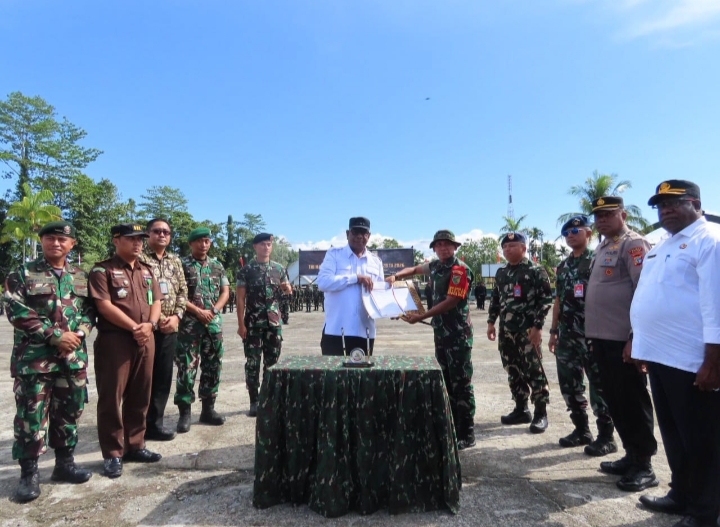Timika – Komando Distrik Militer (Kodim) 1710/Mimika resmi memulai kegiatan TNI Manunggal Membangun Desa (TMMD) Reguler ke-128 Tahun 2026. Upacara pembukaan dipimpin langsung oleh Bupati Mimika, Johannes Rettob, S.Sos., M.M., yang bertindak sebagai Inspektur Upacara (Irup), bertempat di Makodim 1710/Mimika, Kabupaten Mimika, Papua Tengah, Rabu (22/4/2026).