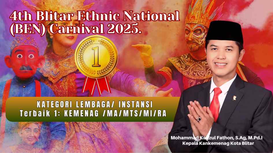 Parade spektakuler yang dipenuhi kostum etnik megah, atraksi seni, serta inovasi kreatif dari berbagai lembaga, instansi, komunitas, dan pelajar tersebut Kementerian Agama (Kemenag) Kota Blitar bersama MA ,MTS, MI dan RA berhasil meraih penghargaan Terbaik 1 kategori Instansi/Lembaga. Keberhasilan ini diraih berkat tampilan kolaboratif yang mengangkat kekayaan budaya dengan balutan kostum etnik penuh makna, gerakan atraktif, serta pesan kebersamaan lintas generasi.