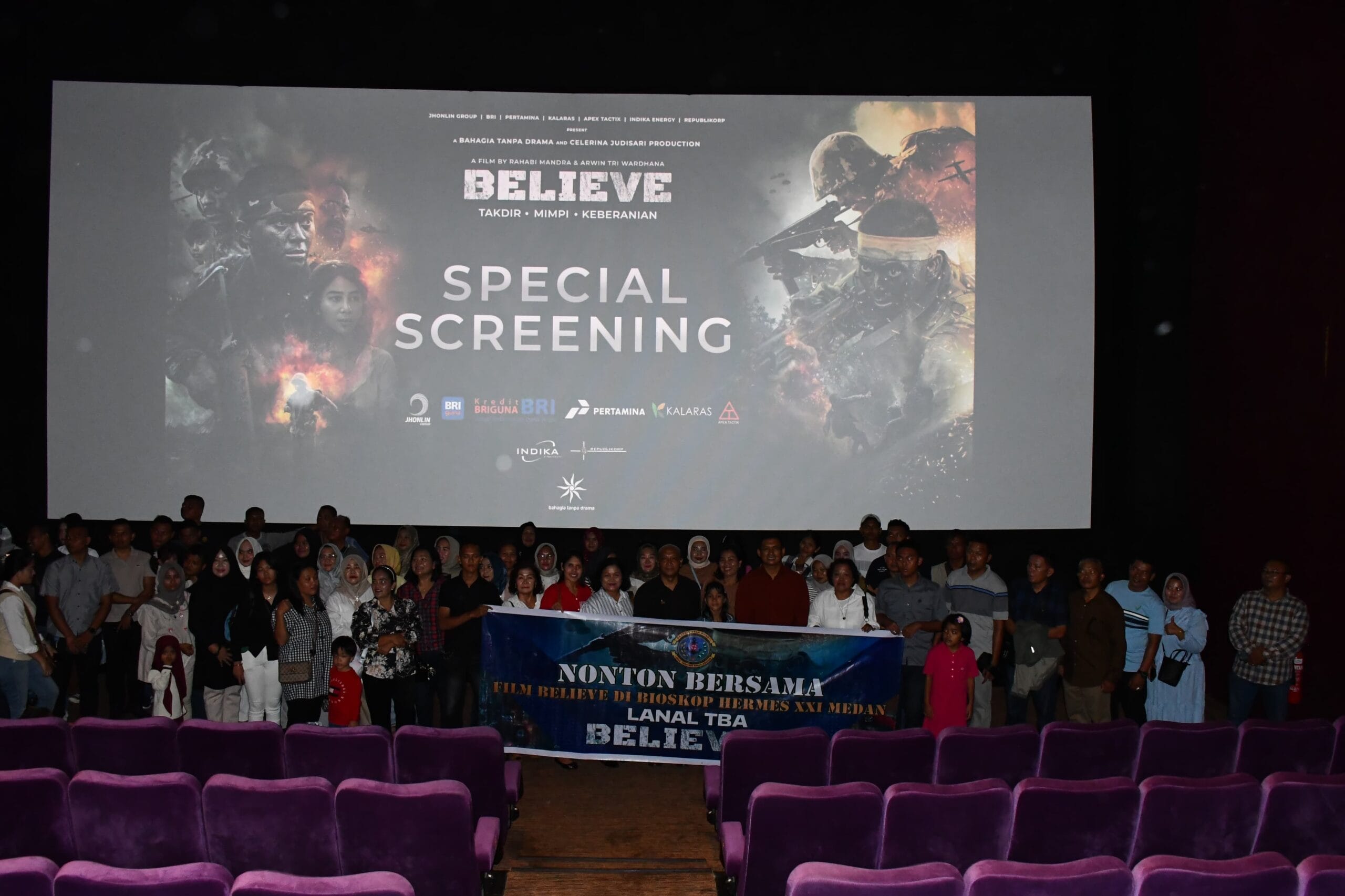 Tanjung Balai,- Untuk mempererat kebersamaan dan menumbuhkan semangat nasionalisme, Danlanal TBA Letkol Laut (P) Agung Dwi H.D, M.Tr. Opsla., CTMP., bersama Prajurit dan Keluarga Besar Lanal Tanjung Balai Asahan melaksanakan kegiatan Nonton Bareng Film Believe di Bioskop Hermes XXI Medan, Jumat (18/7/2025).