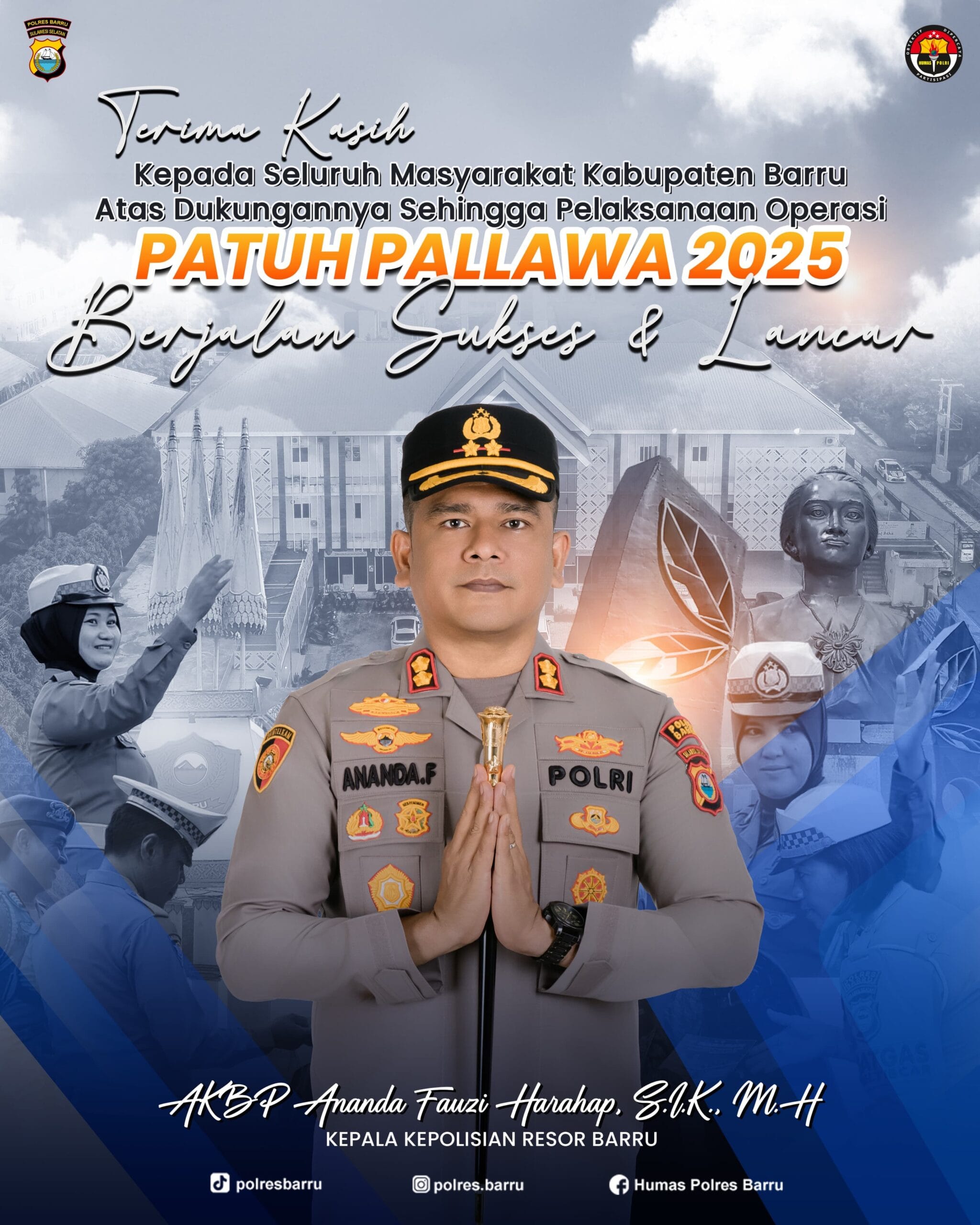 BARRU – Kapolres Barru, AKBP Ananda Fauzi Harahap, S.I.K., M.H., menyampaikan apresiasi dan ucapan terima kasih kepada seluruh masyarakat Kabupaten Barru atas dukungan dan kontribusinya dalam pelaksanaan Operasi Patuh Pallawa 2025 yang berlangsung selama 14 hari.