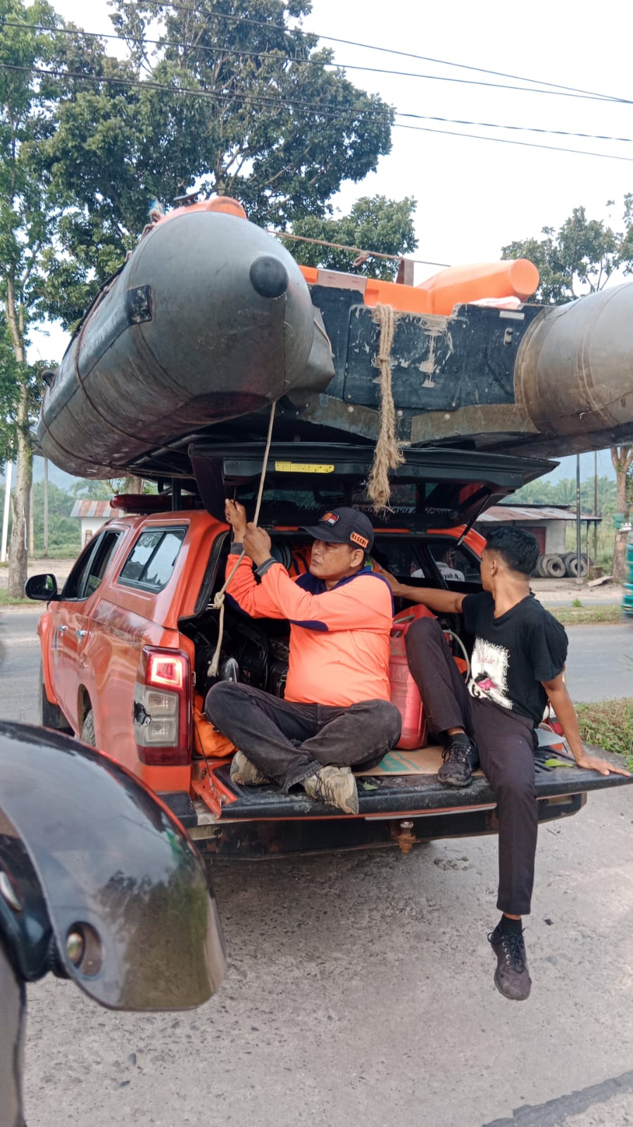 Labuhanbatu – Kaban BPBD Labuhanbatu Drs Darwin Yusma MA.P bersama personil turun Langsung melakukan Pecahrian warga yang hanyut terbawa harus sungai Bilah Rantau prapat dan membawa serta peralatan pecahrian.
