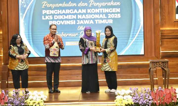 Blitar — Gubernur Jawa Timur, Khofifah Indar Parawansa, didampingi Kepala Dinas Pendidikan Provinsi Jawa Timur, Aries Agung Paewai, secara resmi menyambut kepulangan kontingen Lomba Kompetensi Siswa (LKS) Dikmen Tingkat Nasional Tahun 2025. Acara penyambutan berlangsung hangat dan penuh kebanggaan di Gedung Negara Grahadi, Surabaya.